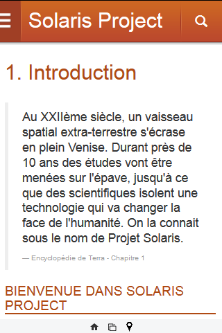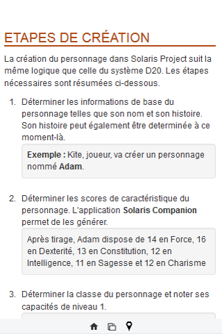 Solaris Project est un jeu de rôle nouvelle génération, mélangeant parties classiques et modernité, à l'aide d'applications web et mobiles. Cette application vous permet d'accéder gratuitement à toutes les règles du jeu, basées sur le Système D20. Créez votre personnage, qu'il soit humain ou alien, soldat ou ingénieur, et partez explorer la Galaxie ! L'application contient également des conseils pour les MJ, les caractéristiques de nombreux opposants potentiels, et un scénario d'introduction pour se plonger au plus vite dans l'aventure !