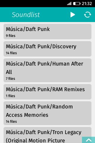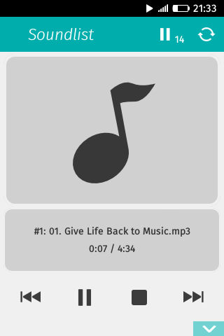 A fork of Folder Player by Andrea Magro matching the Firefox OS 2.0 design. Folder based mp3 player. * How to use: - Long tap on a folder or a file to start immediately the reproduction (current playlist will be erased). - Swipe to the left on a file or folder to add it to the current playlist. - Swipe right or left on the "Now playing" screen to go to the next or previous song.