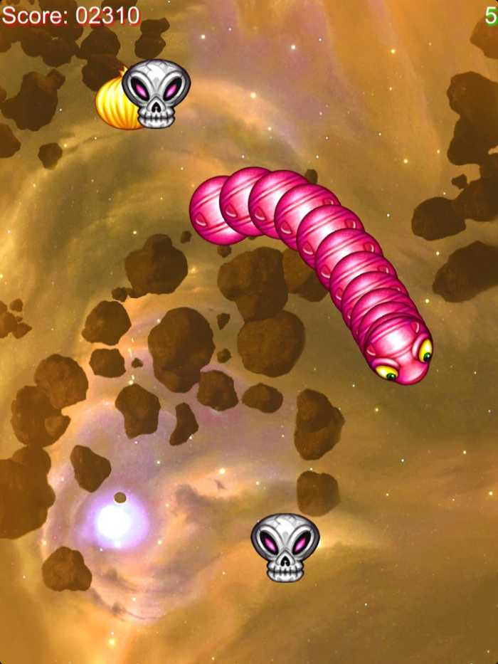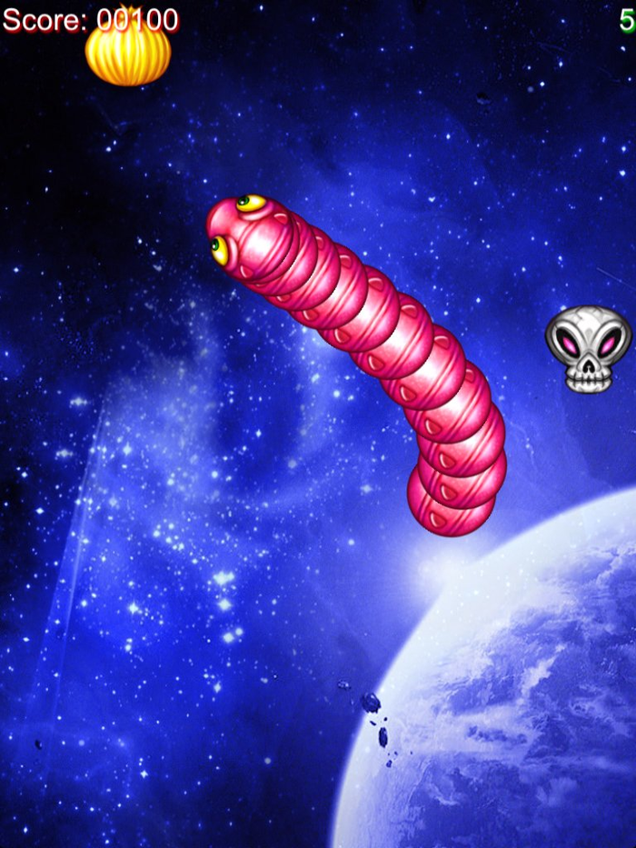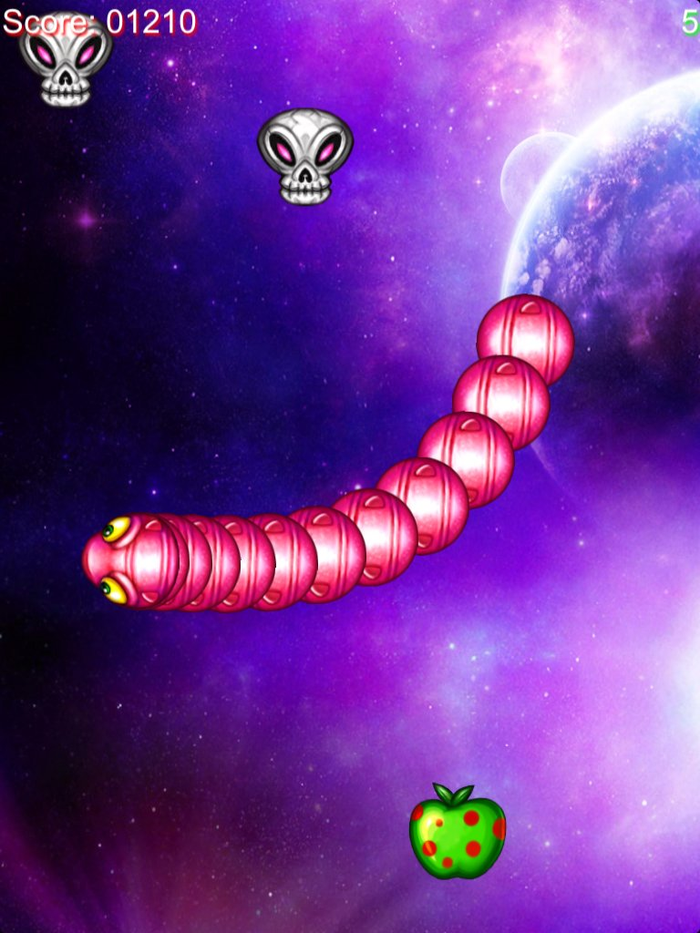 Let the worm eat fruits! Each collected fruit let the worm grow longer and let you earn points! Avoid hitting the skulls.