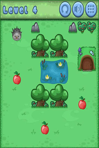 Help tom the hedgehog get safely to his home while grabbing all the apples possible.