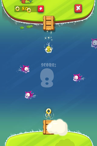 Splashy Adventure is a fast arcade game in which you collect coins and have to avoid attackers. There are two islands and the cute little fish has to swim in between them and collect treasures near the boat bridges. That sounds easy, right? It certainly would be if it weren’t for the predatory fishes that are out to get you. With a single click or tap you can change the direction in which the fish is going and use this to avoid any contact with fishes of prey. If you swim right into them you will not only lose the game but also the cute little fish will get eaten. Play Splashy Adventure now for free and try to escape as long as possible!