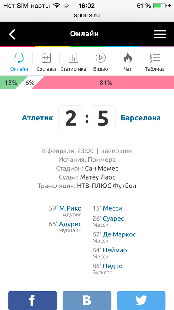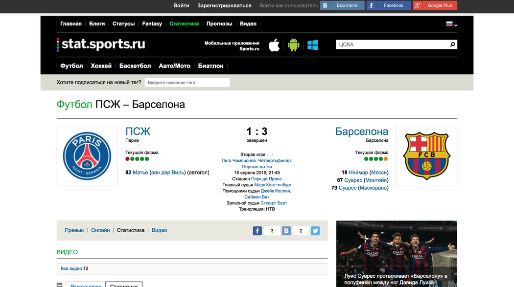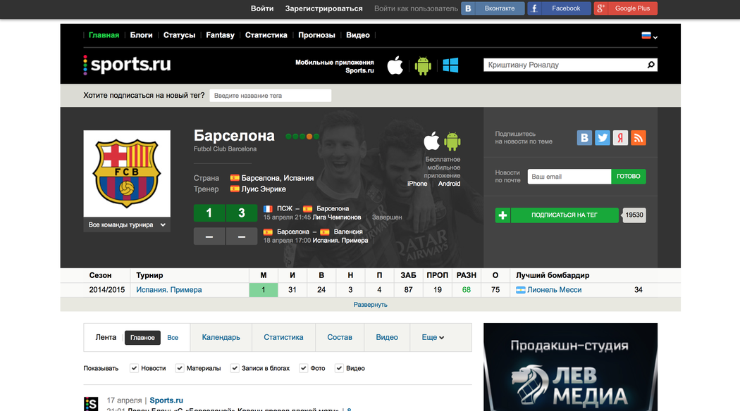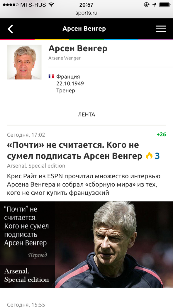Свежие новости российского и мирового спорта, аналитика, интервью, статистика, фото и видео. Блоги звездных спортсменов и тренеров, сообщества пользователей.