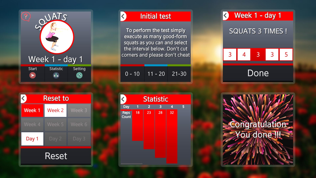 Squats offers you a unique opportunity to get into shape, learn how to do 200 Squats as well as to shape a beautiful muscle profile in only six weeks. Forget complicated systems and exhausting, hours-long workouts! All you need now is 10 minutes three times a week, a comfortable spot, and your smartphone. Squats has a very simple interface with convenient, customizable functionality. Workouts, statistics – everything. Nothing will distract you from the workout now! Simple functionality to reach complicated goals: • Level selection, depending on the results of a physical fitness test • Regular adjustments of workout intensity to your level • Detailed statistics of exercises performed • Interface that does not distract you from you main goal