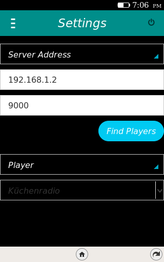 A remote control for logitech squeezebox servers and players. First open the drawer (button on the top right) and go to settings. Fill in your server's IP address and port. Now select your playing device and you're all set. Enjoy!