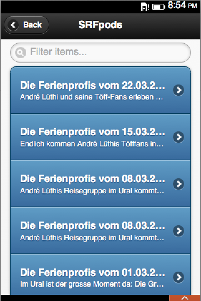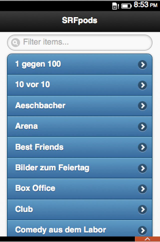 SRFpods shows all video podcasts of the swiss national TV broadcast station SRF.