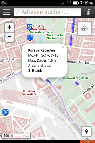 Der Wiener Stadtplan basiert auf offenen Daten der Stadt Wien und bietet neben tollen Kartenmaterial nützliche Zusatzinformationen zu Kurzparkzonen, WC-Anlagen, Behindertenparkplätze, Kunstwerke im öffentlichen Raum und viele mehr. folgende Karteninhalte steht zur Auswahl: Verkehr