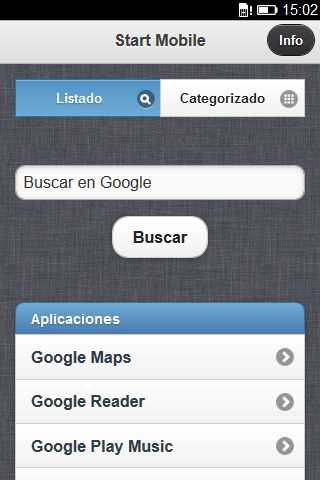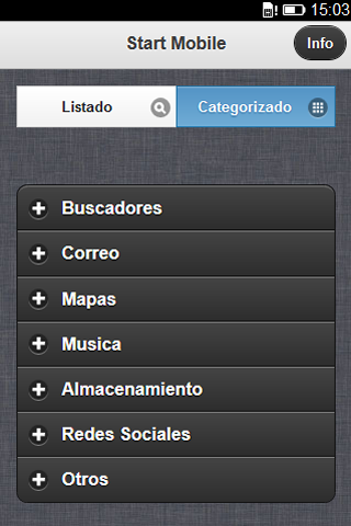 - En un Solo lugar - Con Solo una instalación - Sin Memorizar Usted sabia que puede tener gran parte de las aplicaciones de la Internet, en su teléfono, Con solo una Instalación, en un solo lugar y sin memorizar URLs? ¡Start Mobile llego para eso!; Start Mobile es un programa de la Plataforma One Web de Caliburnus, pensado para facilitar la navegación de la Internet. Confié en una gran aplicación con actualizaciones periódicas de la lista y novedades. En esta Aplicación usted tendrá las Categorías: Almacenamiento, Redes Sociales, Correo, Mapas, Música, Buscadores entre Otros. Todos los Meses la lista se Actualiza, Te invitamos a que pruebes esta gran aplicación!
