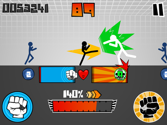 You enjoy fighting games and Stickmen? This game is for you! Play as an heroic Stickman and fight your opponents. To win you must eliminate them all. Be careful ... there are many! Stickman Fighter Epic Battles is a game of skill and speed in which you will need to string together catches and hits. Weapons are also available to you. Avoid getting hit or you will lose! Stickman Fighter Epic Battles is only recommended for ... all types of players! HOW TO PLAY? Stand in front of your opponents and fight them touching the screen right and left. Each enemy has its specificity. A life bar shows your health. CHARACTERISTICS - Stickman - Epic Battle - Fighter - Touch the screen to interact