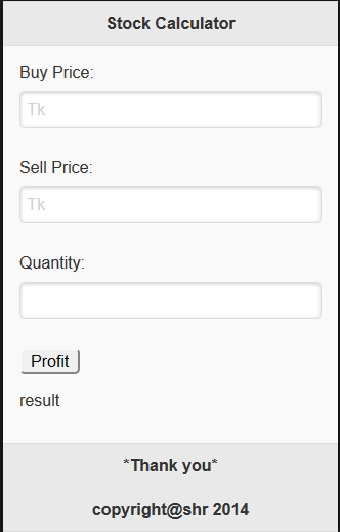 Calculate your profit or loss in stock market. It is an easy application to find how much you get profit or loss.