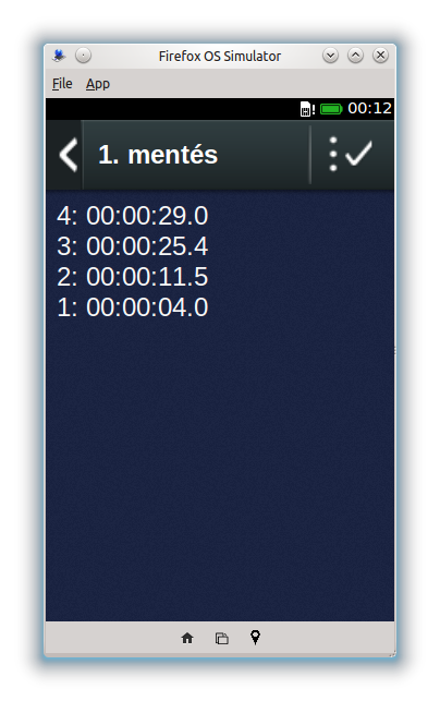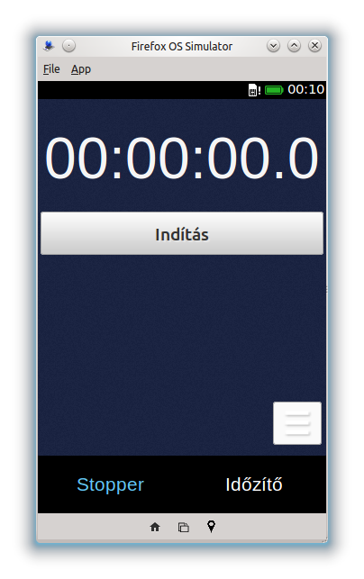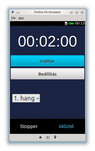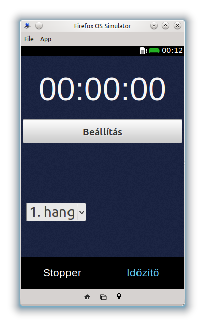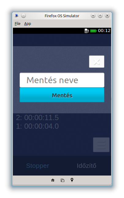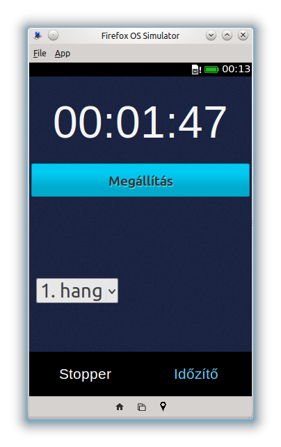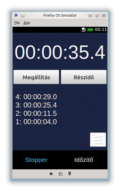 Stopper és időzítő alkalmazás. A stopperben lehetőség van részidők mérésére és azok elmentésére. Maximum 24 órás időzítés állítható be, aminek a leteltekor az alkalmazás hangjelzéssel is figyelmeztet.