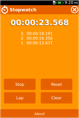 A simple stopwatch app. This app requires at least Firefox OS version 1.2 to display content properly!