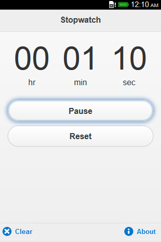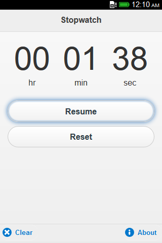 Simple and easy to use Stopwatch and timer. Press Start to begin the timer. Press Pause to temporarily pause the timer. Press Resume to continue the timer. Press Reset or Clear to reset the Stopwatch.
