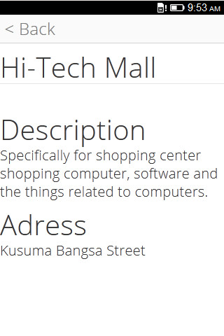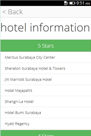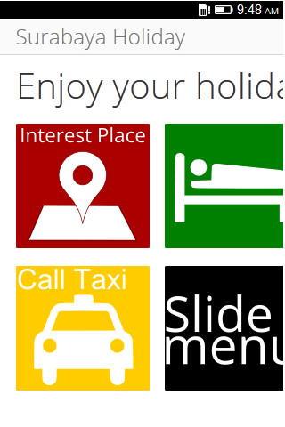 This application was created to provide a review of the places of interest are located in the city of Surabaya. This application provides information of shopping, interesting places to visit while in Surabaya, and the number you want to phone a taxi for traveling around the city of Surabaya.