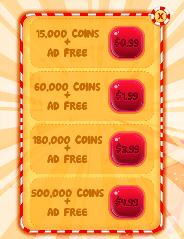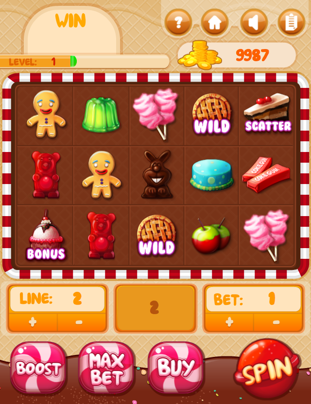 Work your way through a sweet and elaborate 25-lines slot machine, using boosts, charms and levels in a quest to become the very best player.