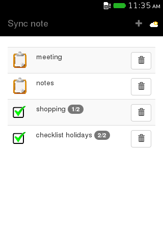 Sync note is a small note app allowing you to write text notes and create checklists and synchronize them over multiple devices (smartphone, tablet, …) running Firefox OS or Android. And you won’t need to create an account or do anything boring/complicated, just enter a pair code on each of your device and they are instantly synchronized !