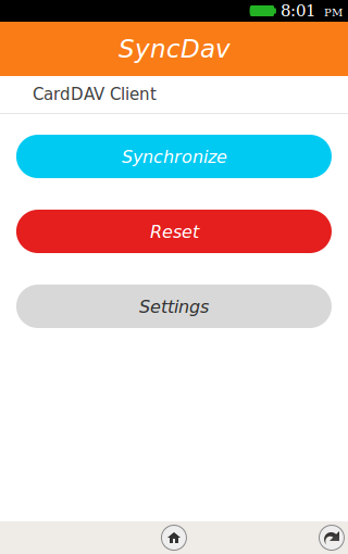 SyncDav is a CardDav Client For Firefox OS. It's a beta app. Currently, SyncDav don't synchronize automatically. To synchronize, you need to remove all your contact and then synchronize. This app was tested with Baikal-Server and Owncloud.
