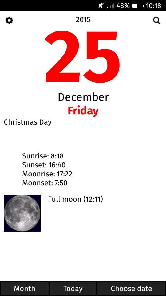 - Optional: location for times for sunrise, sunset, moonrise and moonset