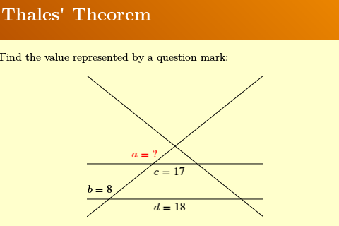 Interactive book from the BELLA project (BELLA E-learning Library with Libre Authorship) on Thales' theorem.