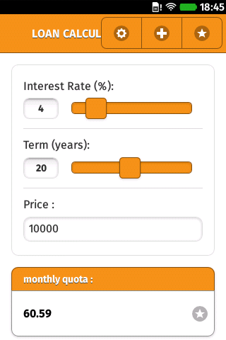 Tekloan helps you calculate your loan fees. It helps you to Calculate the monthly fees of any loan / mortgage. You can easily change the period of the loan and the interest rate and get in real-time the monthly fee to be paid.