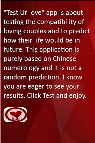 This app is about testing the compatibility of loving couples and to predict how their life would be in future. Simply to know the degree of match with your life partner.