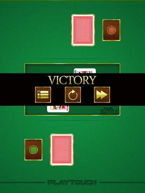 Rediscover one of the greatest games of your childhood with « The Battle » and feel again the weight of destiny on your shoulders. May it be to occupy yourself in the underground or to take a moment with a friend; this traditional card game will be perfect for you. Download it absolutely. “The Battle” is an amusing game for the whole family! Only recommended for... everyone! This game can be played alone or with another person on the same screen. CHARACTERISTICS - Best score - Touch the screen to interact - Solo and multiplayer mode HOW TO PLAY? Not enough time to take out a card deck, but you still would like to play for a bit? The Battle is perfect for you. In this version of the classic game “War”, you and your opponent begin with a deck of card. Then you confront at each turn a card taken from the top of the deck. The player who has the strongest card takes them all and if the cards are of the same strength, then it’s time for the “Battle”. You put a first card face down over the first one, then another one face-up. The strongest face-up card takes everything. The game end when one of the players hasn’t any card anymore.