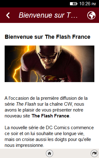 The Flash France est une source d'informations sur la série The Flash. Vous resterez informé sur la série où que vous soyez et à chaque instant. Retrouvez les dernières actualités concernant les épisodes, les acteurs ou bien les produits dérivés. N'hésitez pas à télécharger cette application si vous êtes un fan de la série télé The Flash.