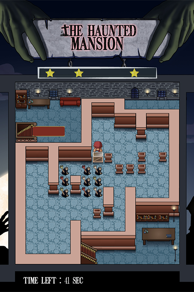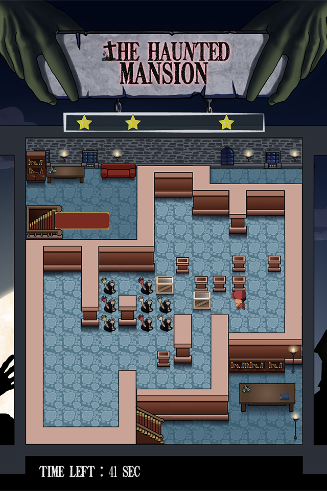 Dive into horror itself and fear for your life in The Haunted Mansion. Incarnate a survivor locked up in a house filled with undead creatures! Use your brain to insure your existence. The Haunted Mansion is an amusing game for the whole family! Only recommended for... everyone! CARACTÉRISTICS - 50 levels - 150 stars to collect - Best Score - Touch the screen to move your character and push crates HOW TO PLAY Inside The Haunted Mansion, a young man is strongly regretting the fact that he didn’t stay at home today. Chased by a horde of zombies, he barricaded himself in one of the multiple rooms of the house. But his safety is not guaranteed for long: the creatures are breaking the rotten wood floor and try to catch him with their hands. There’s only one solution to help him: you will have to barricade the floor with crates before leaving for a new room. Your brain will quickly be challenged by this game and its always evolving difficulty. Each new level will be harder than the last one: more zombies in more and more complexes puzzles. The Haunted Mansion is an amusing game for the whole family! Only recommended for... everyone! You could also try one of our new free games : - Solitaire - Reversi (Othello aiment) - Jungle plumber - Water Blast - Brick Breaker: the challenge - The Speed Ninja - Club sandwich - Mahjong - Parking Panic - Forest jump