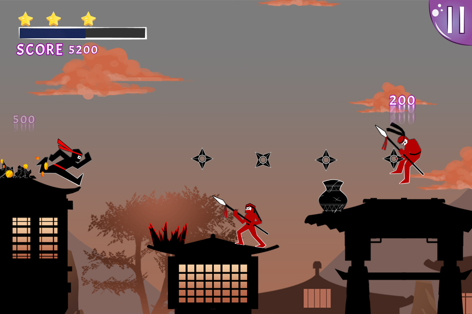 Play a fierce warrior of the land of the Rising Sun in this exhilarating runner and test your reflexes in multiples jump race. The Speed Ninja is an amusing game for the whole family! Only recommended for... everyone! CARACTERISTICS - 100 levels - 300 stars to collect - Best Scores - Touch the screen to jump or crouch HOW TO PLAY? While an army is approaching, a young ninja is leaping from roof to roof. His objective? Let the gongs resound and alert the multiples districts of his village before the enemy attacks. Your goal is thus to get to those gongs which are at the end of each level. You’ll have to jump from platform to platform without falling but also to evade the different obstacles that you’ll meet and kill your enemies with your shurikens. Your dexterity will quickly be challenged by this game and its always evolving difficulty. Each new level will be harder than the last one: its length will be greater, its obstacles will become more and more numerous and its pitfall larger and darker. PLAYTOUCH is happy to show you its brand new game: The Speed Ninja. The Speed Ninja is an amusing game for the whole family! Only recommended for... everyone!