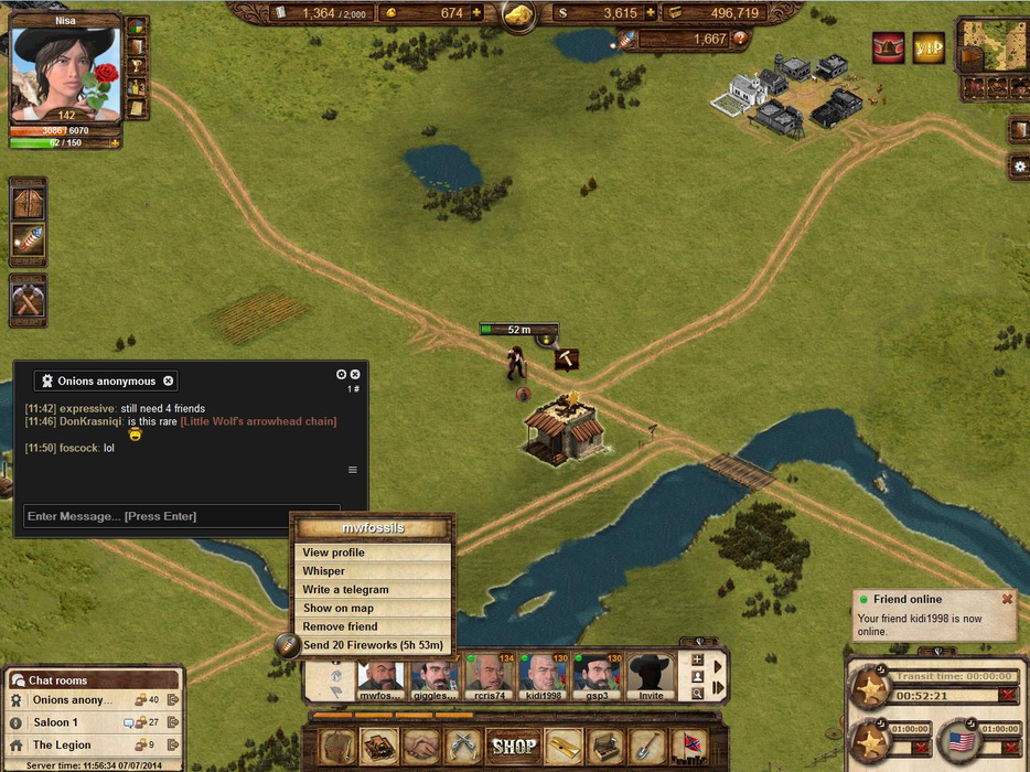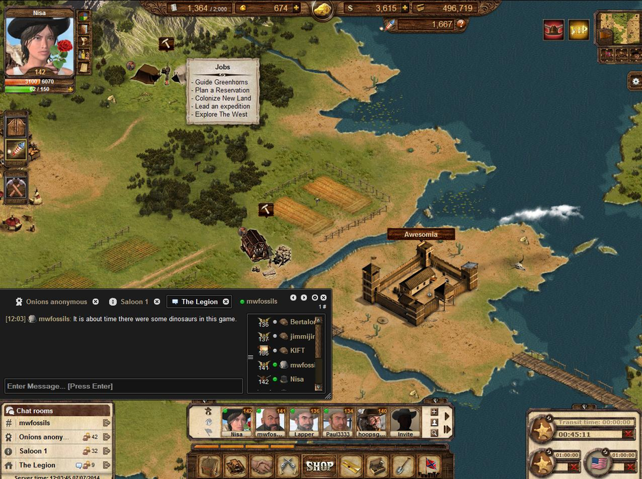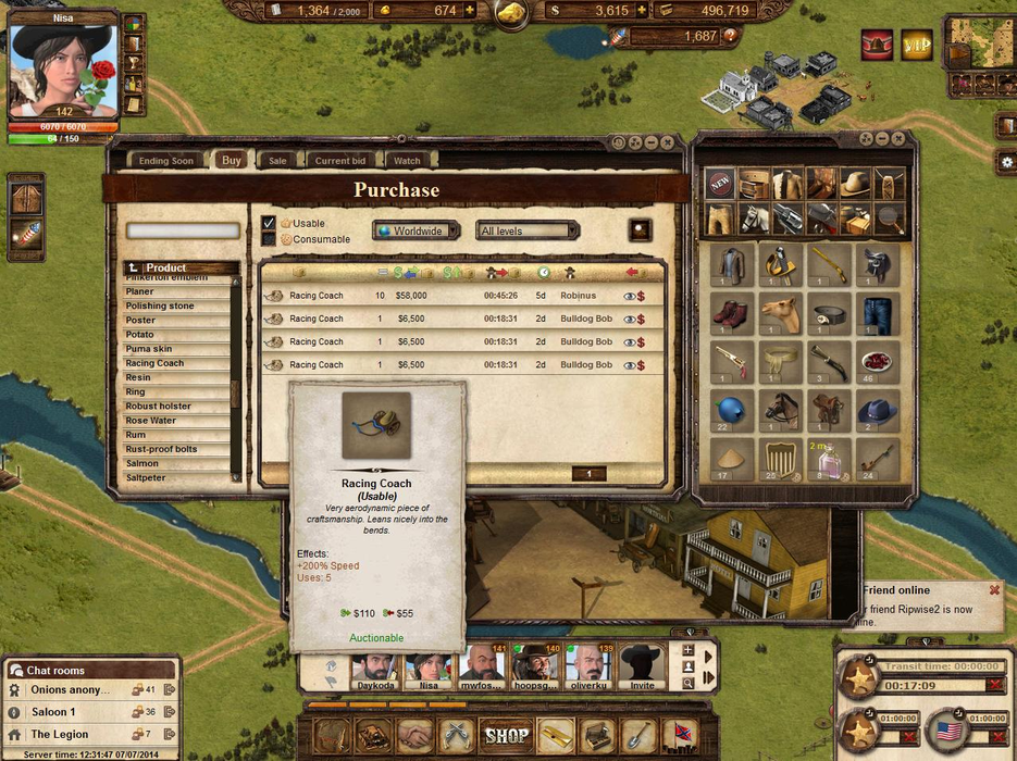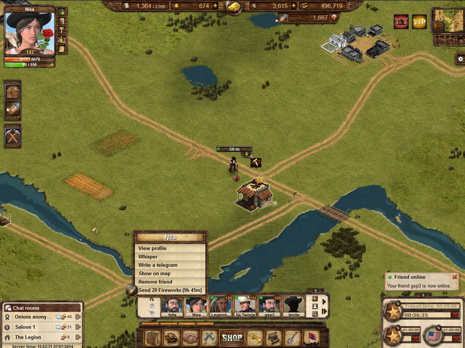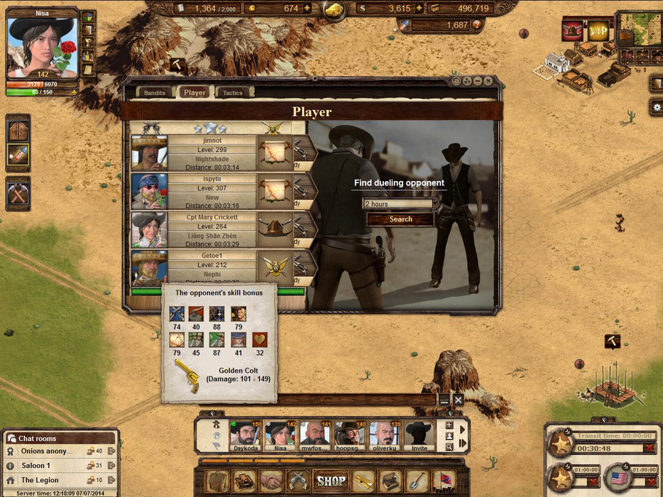 Barkeeper Henry looks seriously at you: “Hey, are you new here? I may have a job for you…” At The West, browser game of the year 2008, you are accessing within seconds. At the role playing game, set in the Wild West, you earn your first dimes as a bouncer, berry picker or shoeshine boy. But don’t be afraid, bigger tasks are waiting for you soon. You choose the character of a workman, adventurer, gunslinger or soldier, searching for glory, luck and gold. Will you slap through the endless widths as a lonely trapper or do you tend to join a strong town in order to conquer big forts with hundreds of allies? Are you standing on the side of law and order or will you perform an ingenious bank robbery? No matter, which way you go, with 100 different workings, more than 14 million users around the world and some dozens of quests, it is never boring at The West. So, saddle your horses, cowboy!