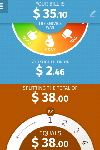 App for splitting a bill among friends, integrating tips automatically based on quality of service and user profile.