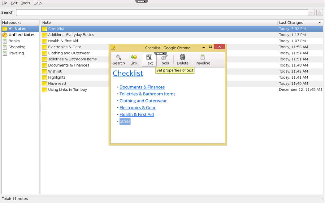 Tomboy on rollApp is an online version of a note-taking app. Tomboy is simple and easy to use and has potential to help you organize the ideas and information you deal with every day. Key features: - Highlighting text - Inline spelll checking - Auto-linking web & email addresses - Undo/redo - Font styling & sizing - Bulleted lists