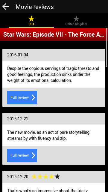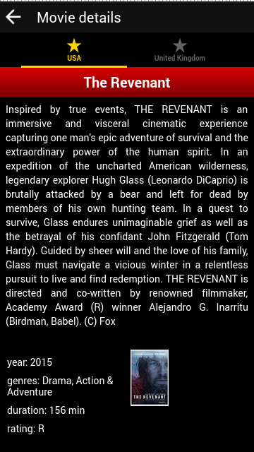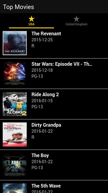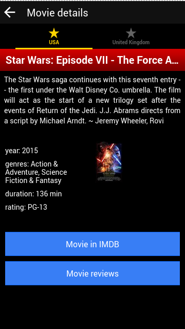 Don't know what movies are worth watching? This application will help you find the most popular movies according to US and UK box office. In case the movie's descriptions are not sufficient, you can read interesting reviews or navigate to IMDB.