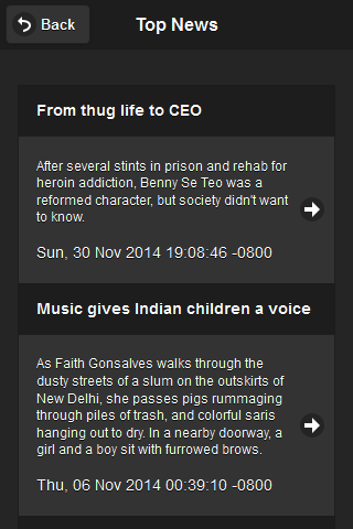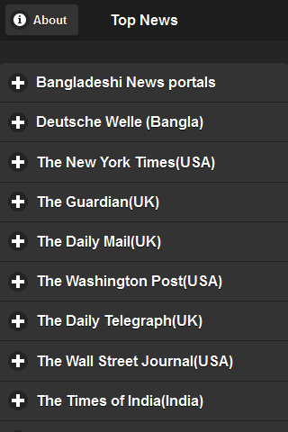 Top News is RSS feed based application this application gives a quick review of some famous news sites. It helps you to get notify about latest news of the world. As it is a collection of different types of news portal you can choose your desired one easily. Stay with us, a new batter version is coming soon with lot more. Don't forget to review and let us know what makes it batter.