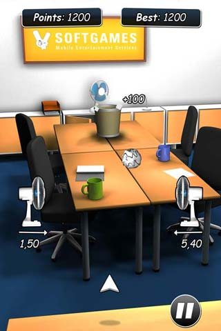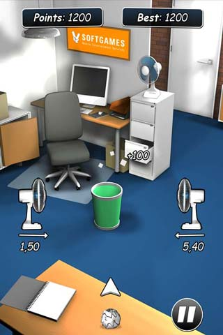 You are stuck in the office again and you need to kill some time? As doing your daily work is not an option, it is time to get ready to play office games! Put your feet up, virtually crumple up a piece of paper in this fun online game and see if can throw it into the small trash can in your room! Easy enough you think? Well, think again! The electric fans blowing fresh air through your office will make your task harder and harder as they power up over time. Don't give up and try to make the shot anyway!