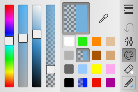2.1 - Dark and light human skin colors are now available. Now the palette has 16 colors.