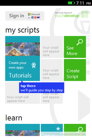 A client to the best way to program on-the-go. Created by Microsoft Research, TouchDevelop is a cloud-based, touch-oriented, development website that allows you to quickly create fully functional apps and export them to the Windows 8 and Phone Store, Google Play, The Apple App Store, and online as web apps.