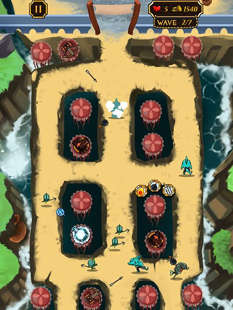 You like cute and colorful little fishes ? You’d love having an aquarium filled with these beautiful exotic creatures? Well, it’s time to reconsider your situation because an army of fishes, whales, jellyfishes and turtles armed to the teeth are going to come onto dry land to set the country on fire. If you want to avoid this, you’ll have to use strategy and tactics… Show this bunch of watery freaks that they are the next one the menu of the Sushi bar around the corner! TD Fish Attack is an arcade game in which armies of aquatic creatures follow a predetermined way. If these creatures reach the end of the way, they’ll take some of your Health Points. You’ve got the possibility to create multiples types of towers that you’ll have to position on the ground so that you eliminate as many enemies as possible before they take you out. Survive an infinite succession of waves of enemies that are more and more intense and in which the creatures will become stronger and stronger. Destroy as many fishes as you can and prove that you are the king of Defense. CHARACTERISTICS - Multiples types of tower - Hundreds of creatures - Best score