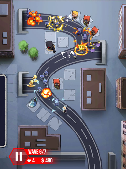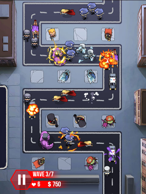 You’ve always dreamed to become a super-heroe ? You’ve always wanted to fly in the sky, save people and stuff? Well, in this case you’re at the wrong house but if you feel like a super-villain, you rang the right bell. Crime geniuses of all kind, be welcomed in this great and beautiful operation that is TD Super Heroes. We have bank to rob, building to blow up and all we ask of you… is to defend us in front of an army of super-heroes that are slightly pissed and potentially lethally aggressive… Easy, right? TD Super Heroes is an arcade game in which a succession of super-heroes who came from all corners of the earth follows a specific way at the end of which there is your health points reserve. Each enemy who reaches will take some of your health points away. You’ve got a small team of super villains with their own characteristics. Use them and give them a position on the field to take down as many super as you can before they knock you out. Survive an infinite succession of waves of enemies that are more and more intense and in which the heroes will become stronger and stronger. Destroy as many of these boy-scouts as you can and prove that you are the king of crime... or at least one of his minions… CHARACTERISTICS - Multiples types of tower - Hundreds of creatures - Best score
