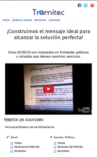 Tramitec S.A.S dedicada a la redacción y trámites de comunicaciones escritas de usuarios a diferentes entidades públicas, privadas, mediante la aplicación de buenas prácticas sujetas a Gobierno en Línea, mediante un sistema de gestión de trámites para facilitar los procesos de atención al ciudadano, fortaleciendo el buen Gobierno a través de la tecnología. Permitiendo a nuestros clientes ahorro de dinero y tiempo en sus trámites diarios.