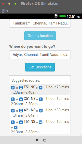 An app that provides public transit details between the source and destination locations. Uses Google Maps API