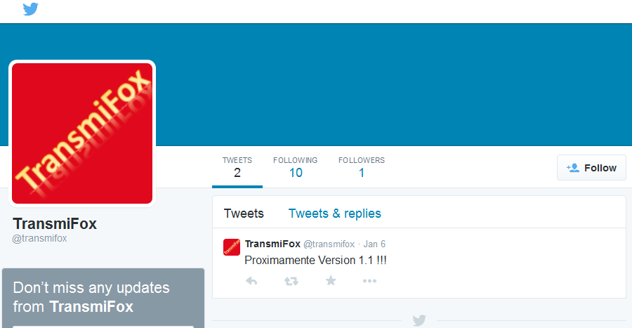 - Se agregó el botón para seguirnos en twitter: twitter.com/transmifox
