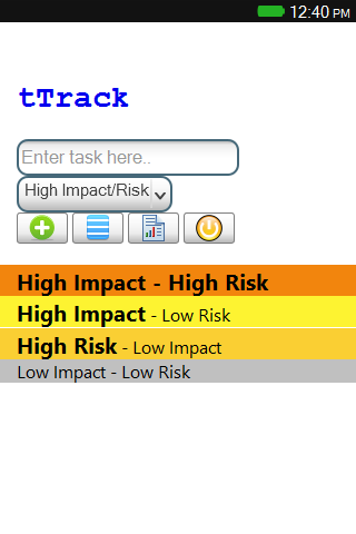 Simple Task tracker with Time management quadrants. Features: 1. Add tasks on the fly 2. Manage tasks based on criticality 3. Update task on completion - which removes task from the list but maintains in database for reporting 4. Authenticate with Google 5. Reporting Feature which lists all completed tasks 6. Restore task feature under report. 7. Usage Analytics with a chart