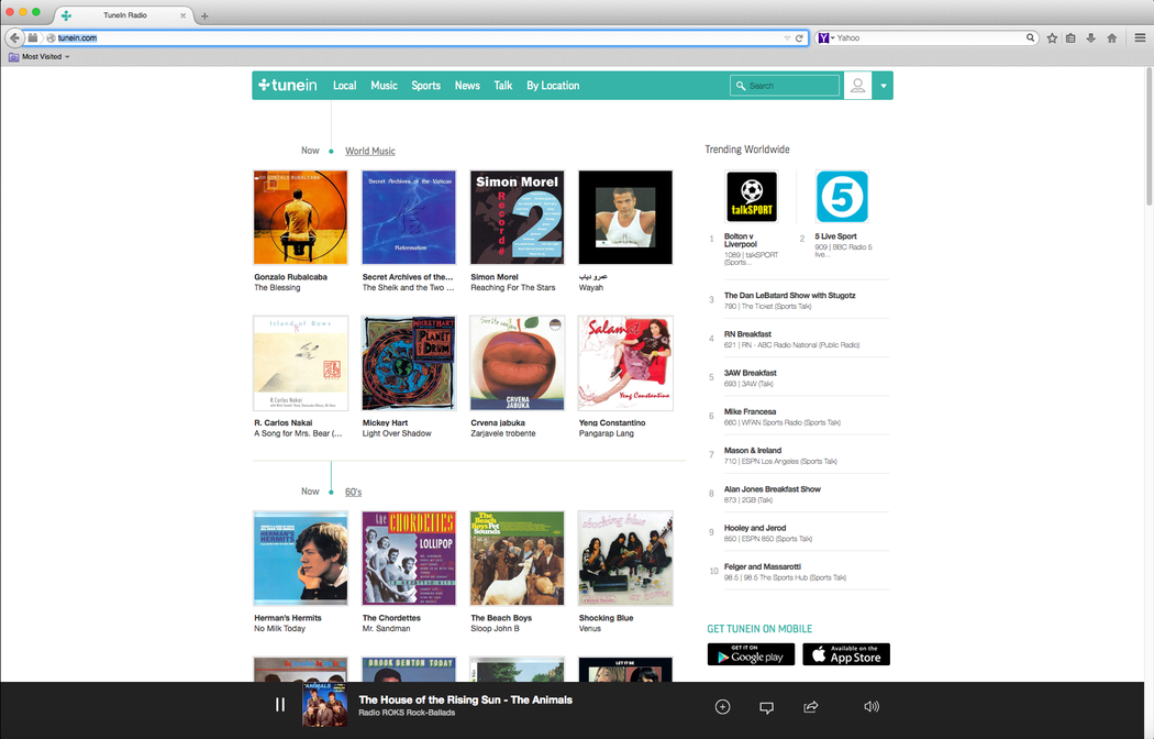 Listen to the world’s largest collection of radio stations absolutely free. TuneIn has all of the best sports, news, music and talk radio as well as live events and top podcasts. Stream over 100,000 real radio stations, playing live from around the world. This is real radio.