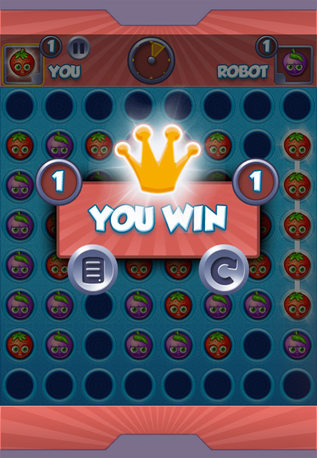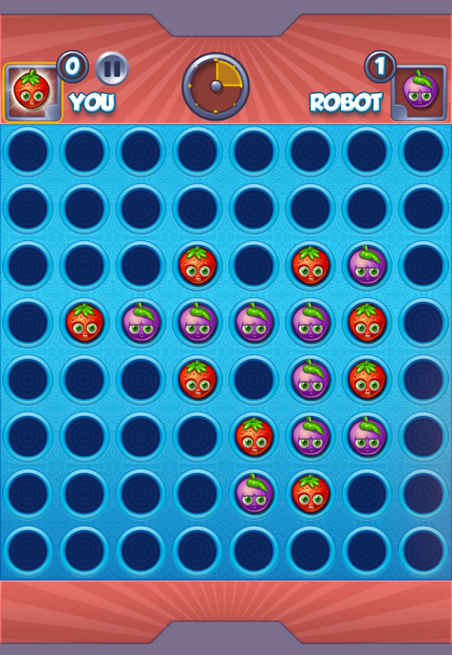 Tap to place your Fruits before your time is up. Connect five fruits vertically, horizontally or diagonally to win.