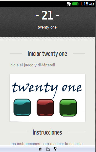 21 is a simple and adictive game. You have to get the 21 number by pressing the correct places in 25 attempts. ¿Can you win?