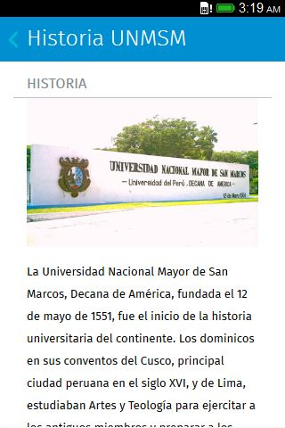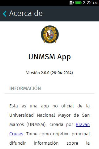 Primera app (no oficial) de la Universidad Nacional Mayor de San Marcos en la plataforma FirefoxOS. Desarrollada por Brayan Cruces. En BETA.