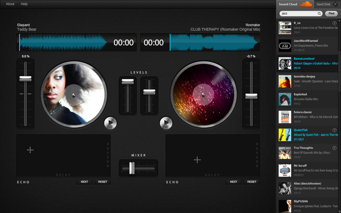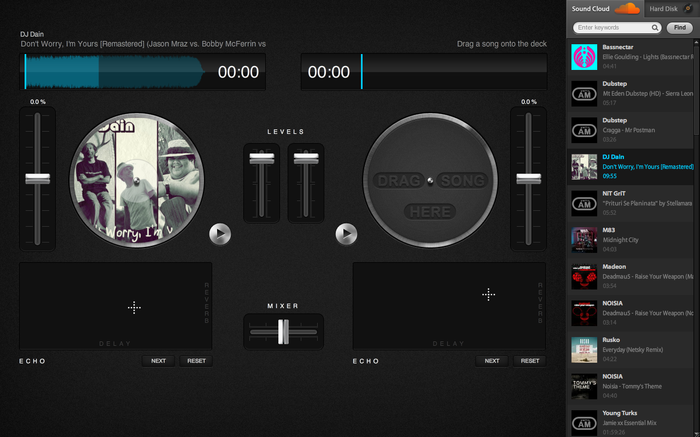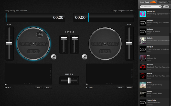 Virtual turntables in your browser. Until AM transforms your web browser into a full-fledged DJ setup. Possibilities include vinyl scratching with two turntables, playback speed adjustment, sound modification through effects and more. All this straight in your browser, without installing anything - just enter the party, take over the DJ booth and give it a spin! THOUSANDS OF SONGS IN YOUR RECORD CASE Seamlessly combine the enormous amount of songs uploaded by the SoundCloud community with the ones on your local hard drive. * Access songs from SoundCloud * Download songs onto your hard drive as mp3 files * Search for your favourite artists or find out what's hot in the community * Load your own audio files from the local hard drive * Search and preload songs while playing other ones * Simple interface: one list of songs, drag and drop onto the turntables VERSATILE SOUND TWEAKING Throw some live performance flavour into your set with virtual vinyl scratching and effects. Add a slight stadium echo, or deform the songs completely - you're the dj at controls! * Web's most realistic turntable simulation * Accurate effect control with an XY controller pad * Echo, chorus, filter, bitrate and distortion effects * Combine multiple effects for advanced crookedness