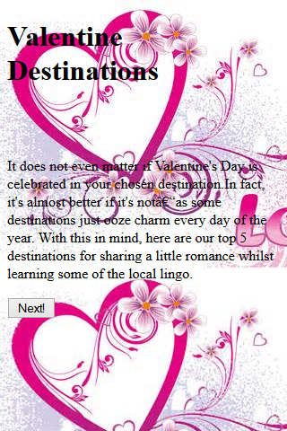 This app contains some of the best places to celebrate with their valentines. App Viewers can find some of the best places in the world for celebrating their Valentine Day.