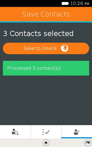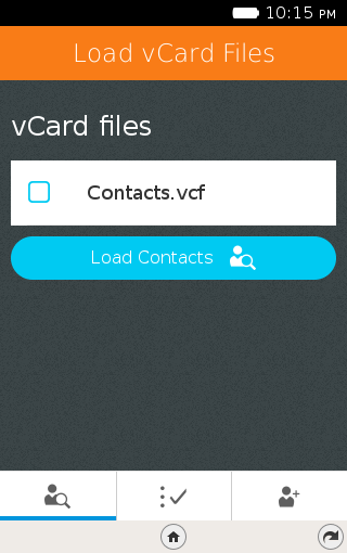 vCard contact importer VCFPorter allows you to selectively import contacts from one or more vCard (.vcf) files on your phone's storage. Some vCards fail to import on FFOS 1.3, this app supports FFOS 1.3 ** Note, if you do not need to selectively import, please use the default contact import built in to FFOS 2.0 and up ** VCFPorter is open source! Find the code @ https://bitbucket.org/t3hmrman/vcfporter