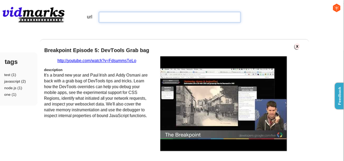 Homepage: https://github.com/silverbucket/vidmarks